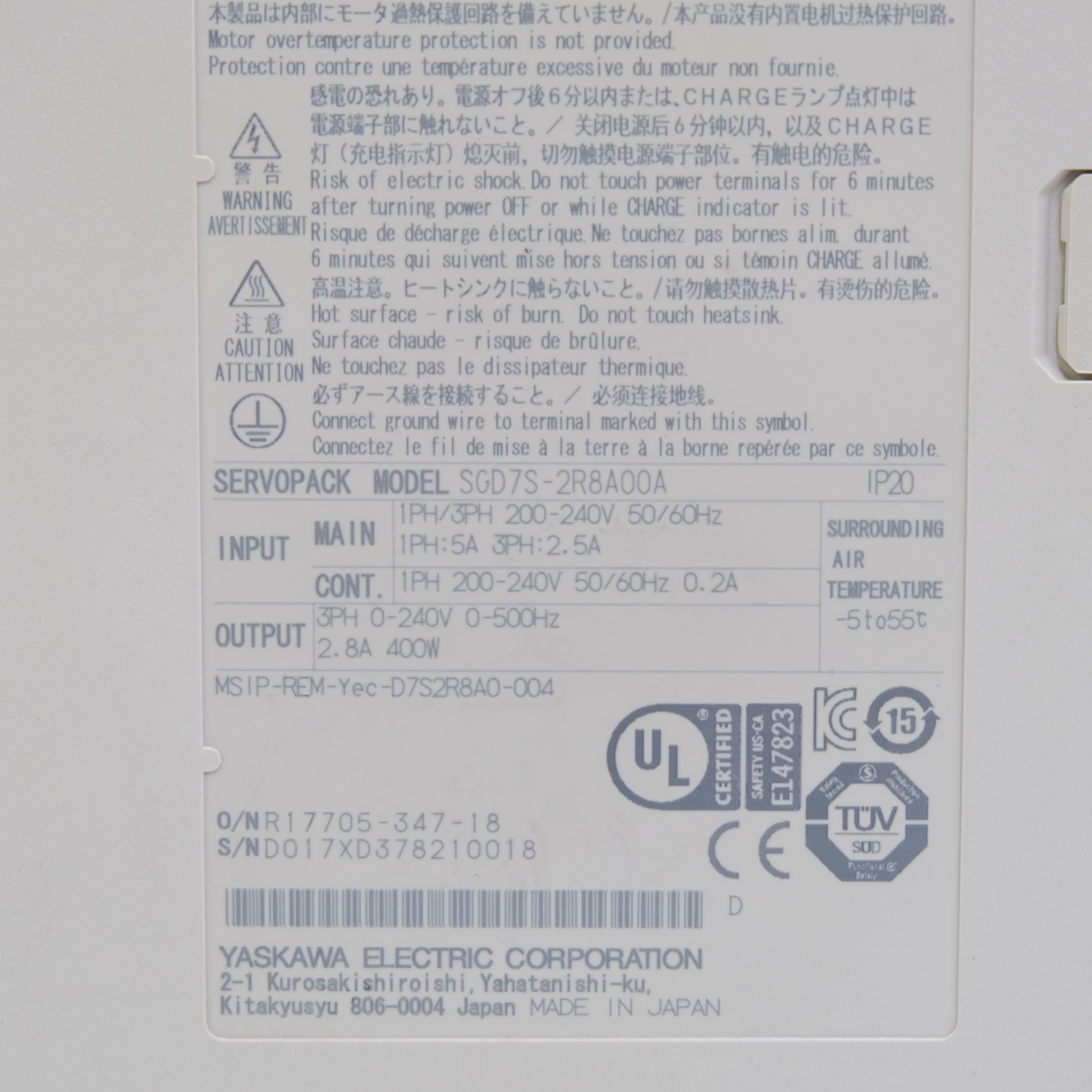 商品名:安川電機 サーボパック SGD7S-2R8A00A