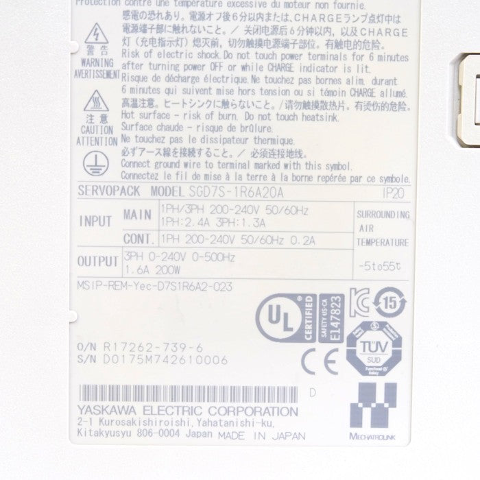 商品名:安川電機 サーボパック SGD7S-1R6A20A